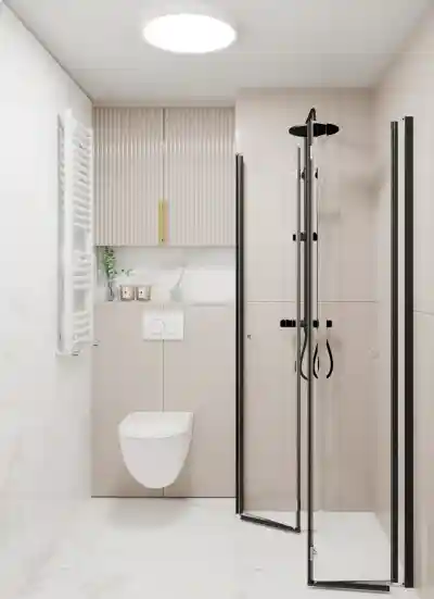 Drugi apartament tego samego inwestora, tym razem przeznaczony pod wynajem długoterminowy. Inne wymagania niż przy krótkoterminowym: najemca mieszka tu na stałe, więc wnętrze musi być nie tylko estetyczne, ale i naprawdę wygodne do codziennego życia. Jednocześnie materiały muszą wytrzymać wymianę najemców co rok-dwa bez konieczności odświeżania.